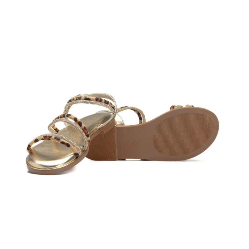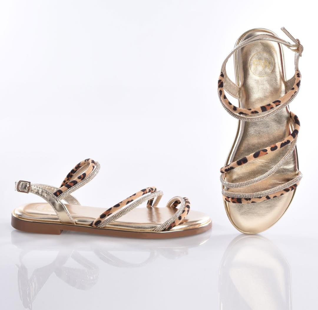 CHAR GOLD & LEOPARD PRINT SANDALS