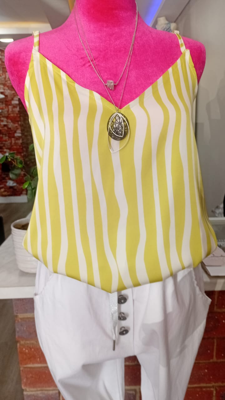 This super cute yellow stripe cami is a summer must have by Kate Jordan