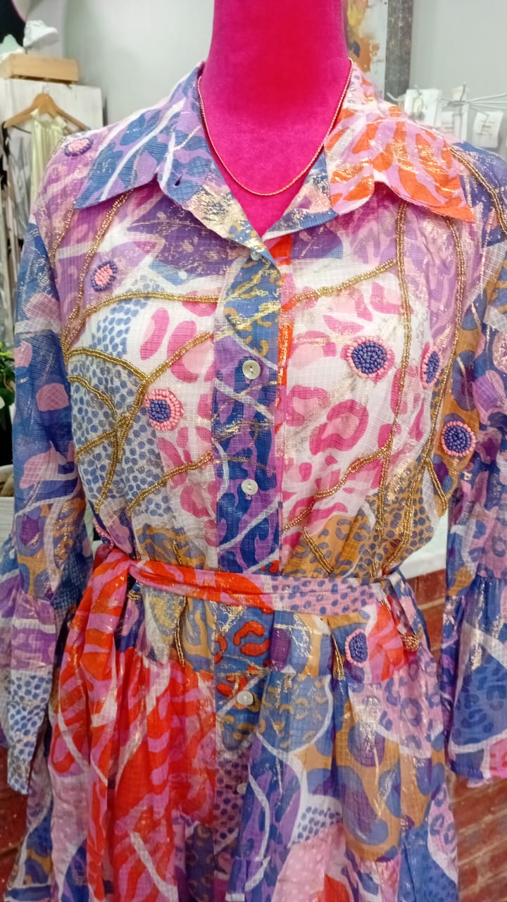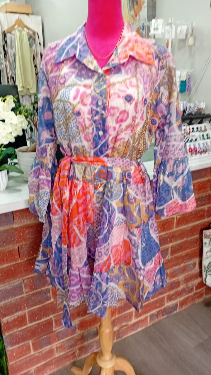 Multi color purple pink and gold detail dress by Stella Morgan
