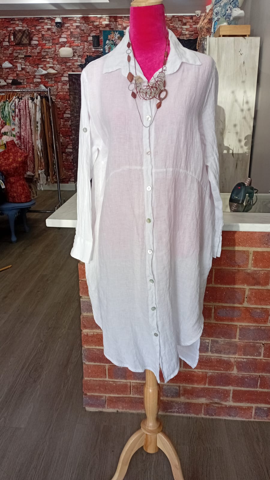 THIS DUAL PURPOSE BUTTON DOWN DRESS CAN ALSO BE WORN AS A CARDICAN SUPER CUTE OVER A VEST AND DENIMS TO GIVE IT A CASUAL FEEL