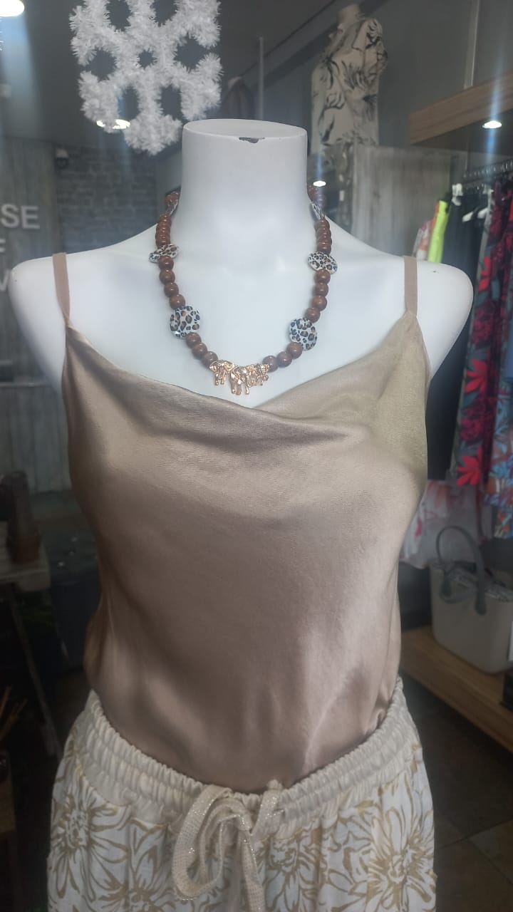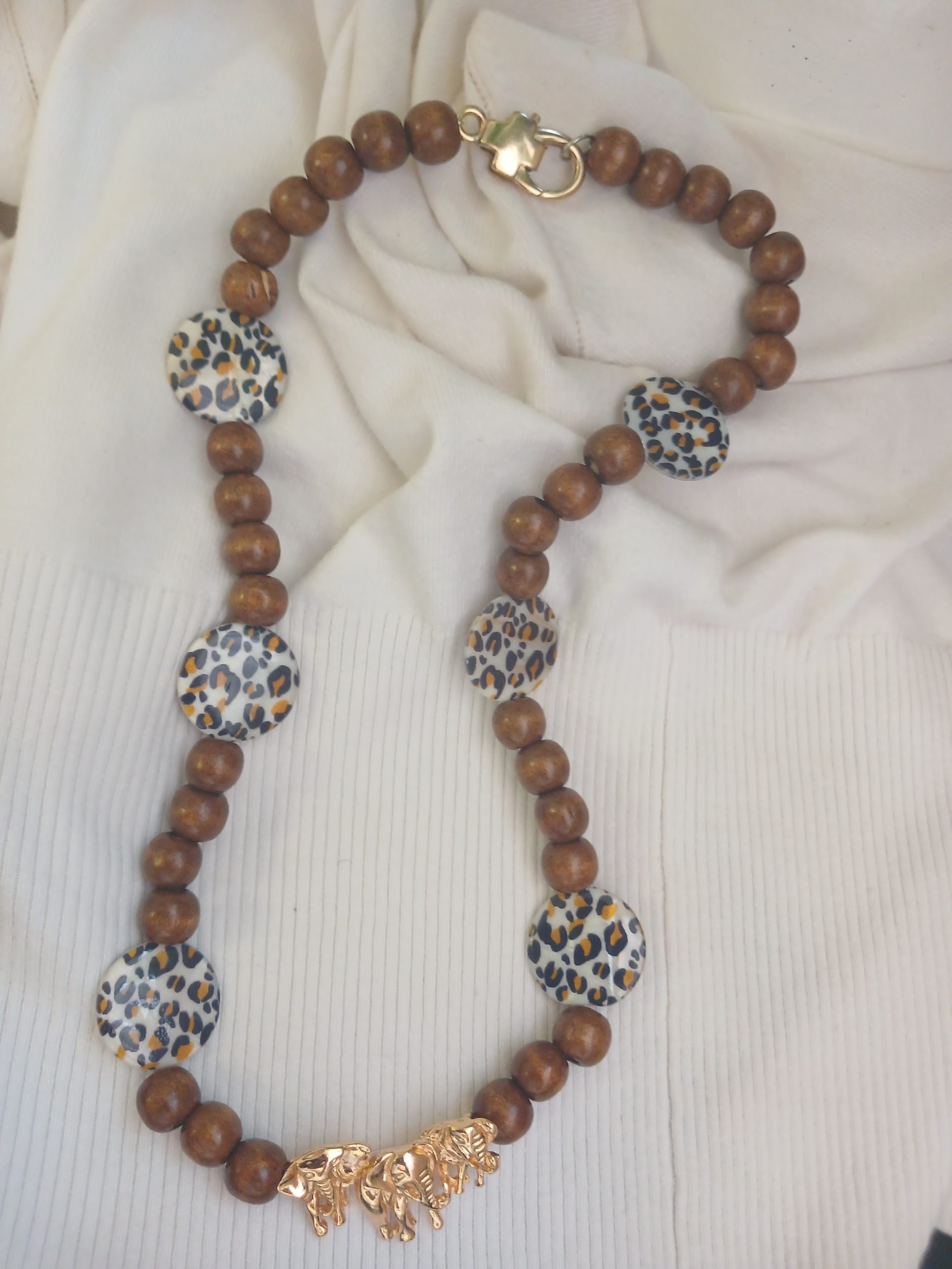 DCN0001-ANIMAL BROWN BEAD NECKLACE