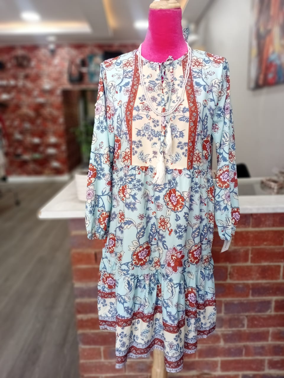 SUPER CUTE BLUE MULTI COLOR SUN DRESS