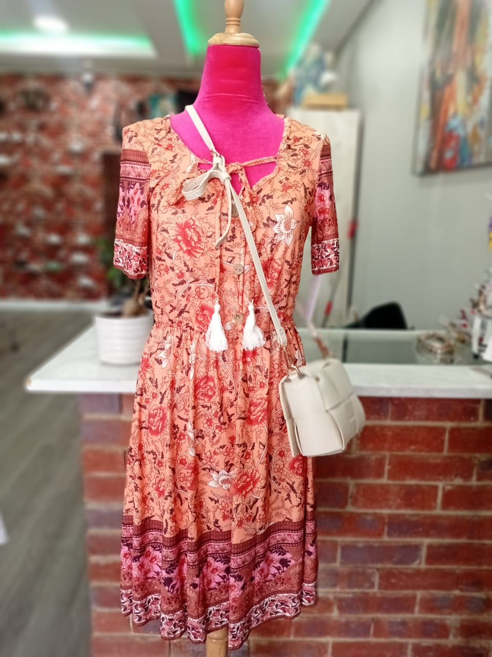 SUPER CUTE ORANGE MULTI COLOR SUN DRESS