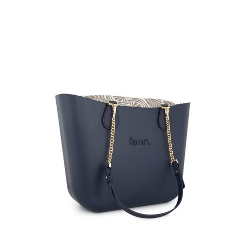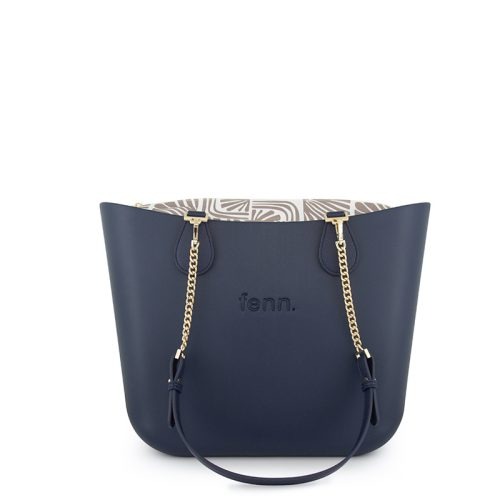FENN Original Collection – Navy – Pattern Inner – Gold Zip – Navy/ Gold Chain Handle