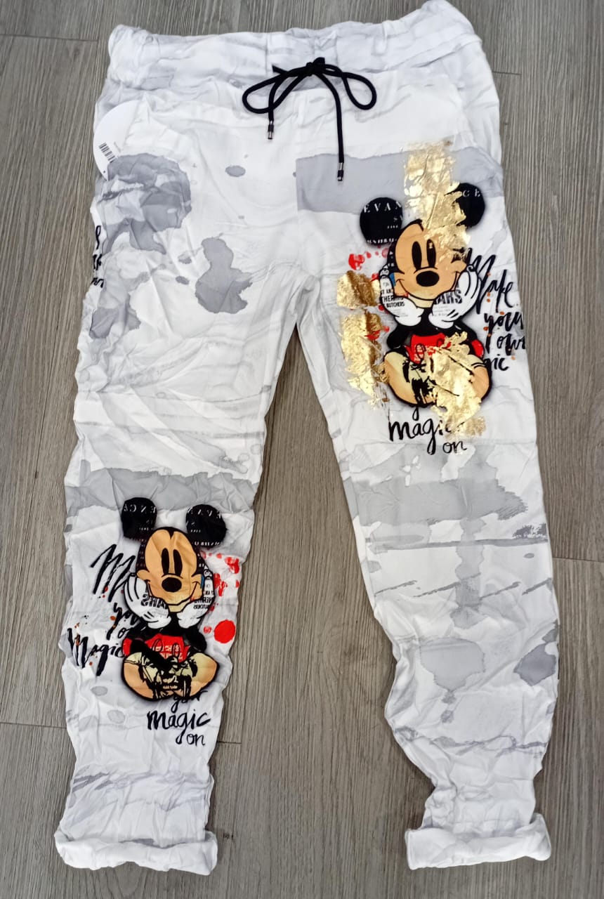 Super cute and comfy stretch waist pants with micky mouse print