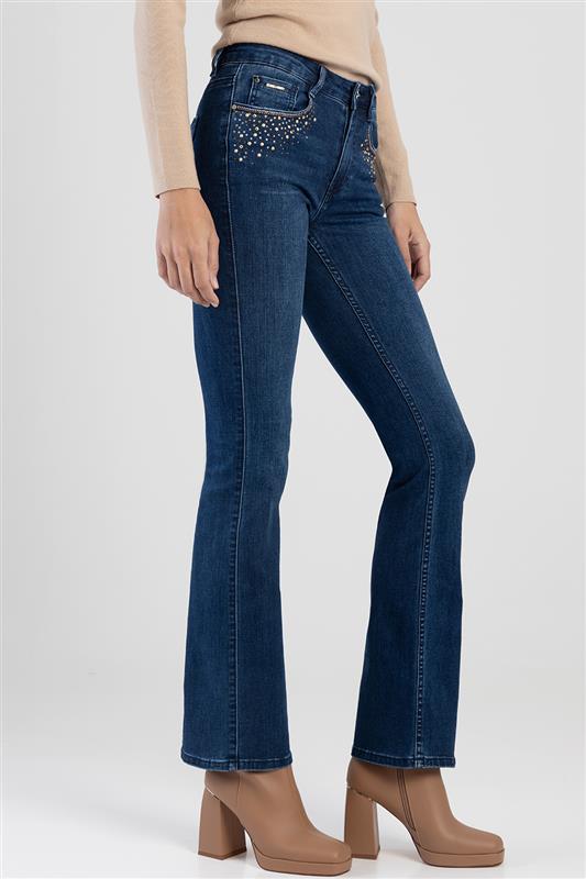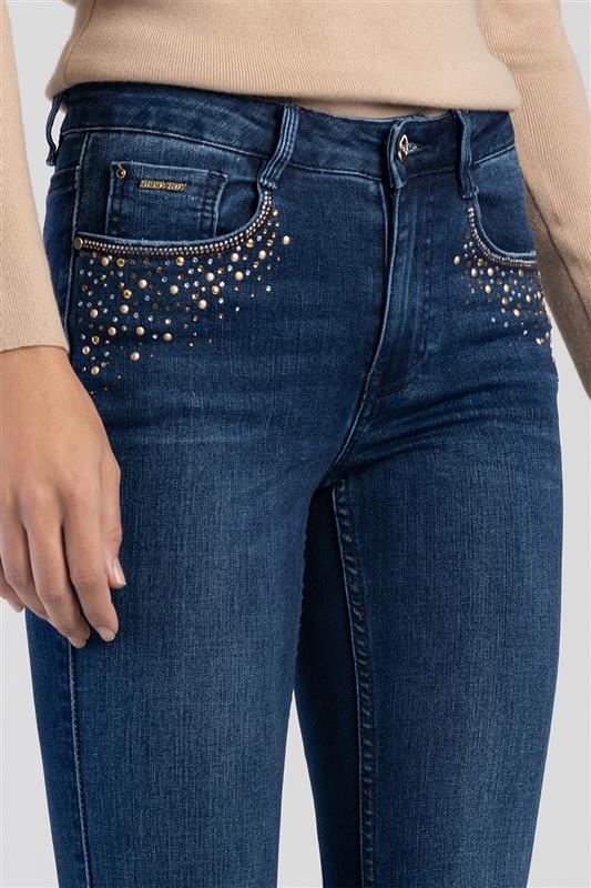 MELANIE BLUE SISSY BOY JEANS WITH FRONT POCKET BEAD DETAIL