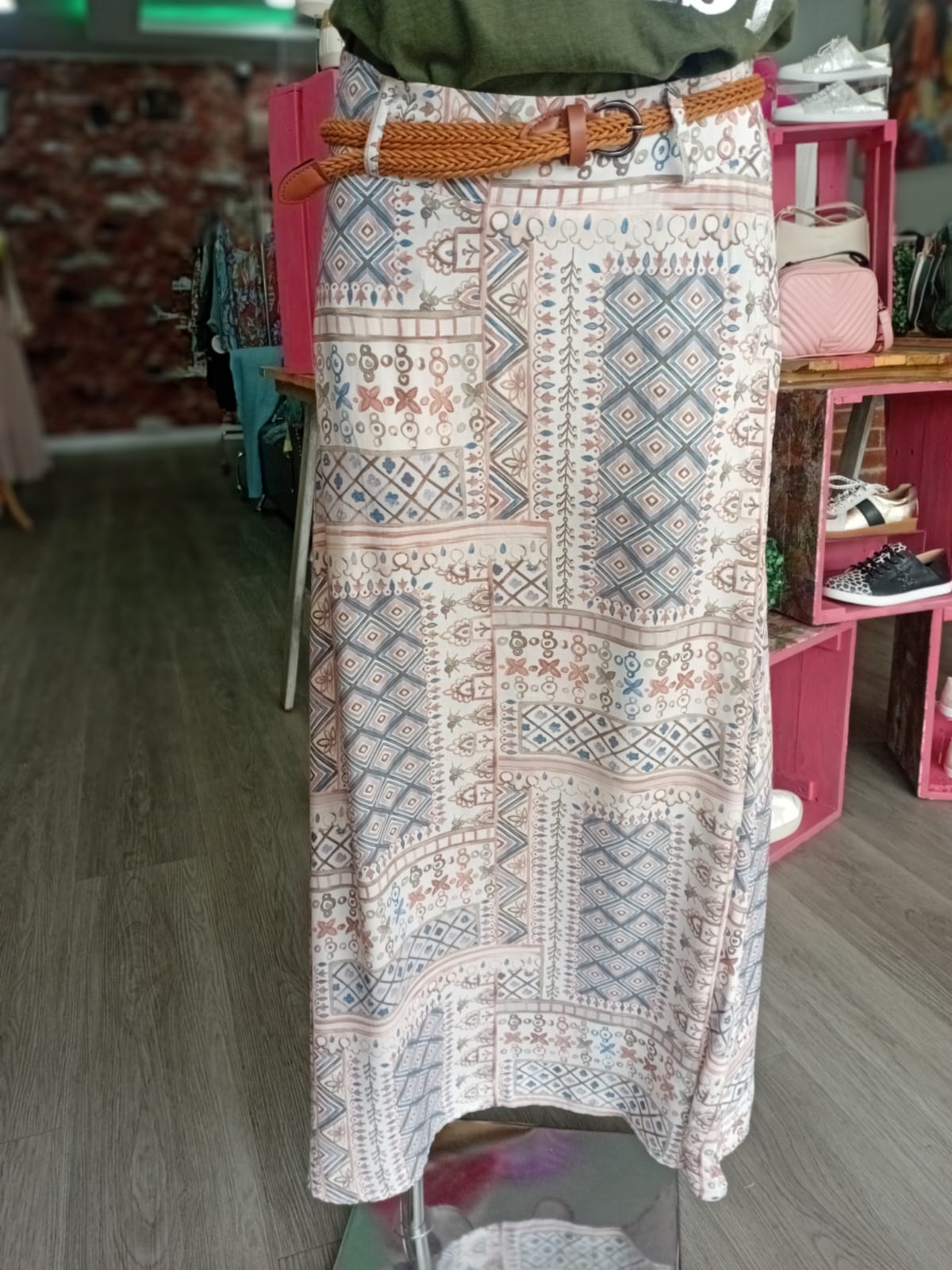 STELLA MORGAN BRINGS YOU A TIMELESS SKIRT WITH ITS SOFT MULTI PATTERN PRINT THAT BRINGS OUT THE DIVINE FEMININE WITHIN
