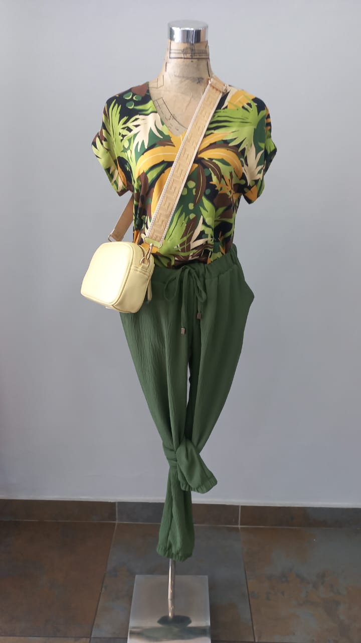 IT3542-PANTS OLIVE PANTS WITH FLOWER DETAIL