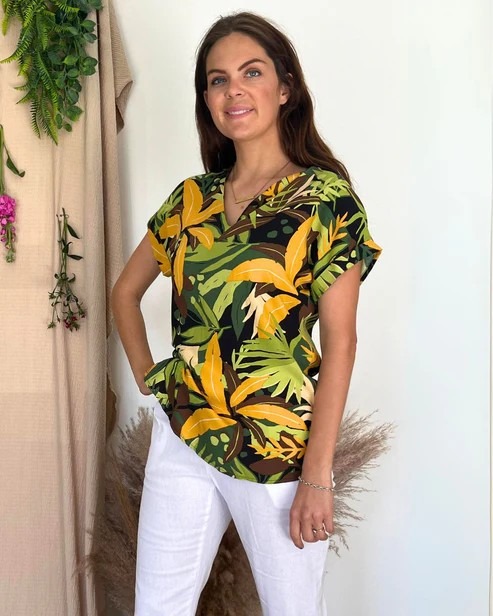 SADIE-TOP TROPICAL PRINT V-NECK TOP