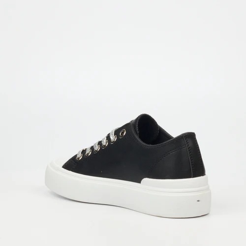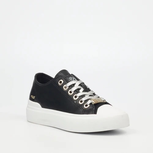 MISS BLACK COMFORTABLE BLACK SNEAKERS WITH WHITE SOLE AND A TOUGH OF ELEGANCE OF A MISS BLACK GOLD BADGE