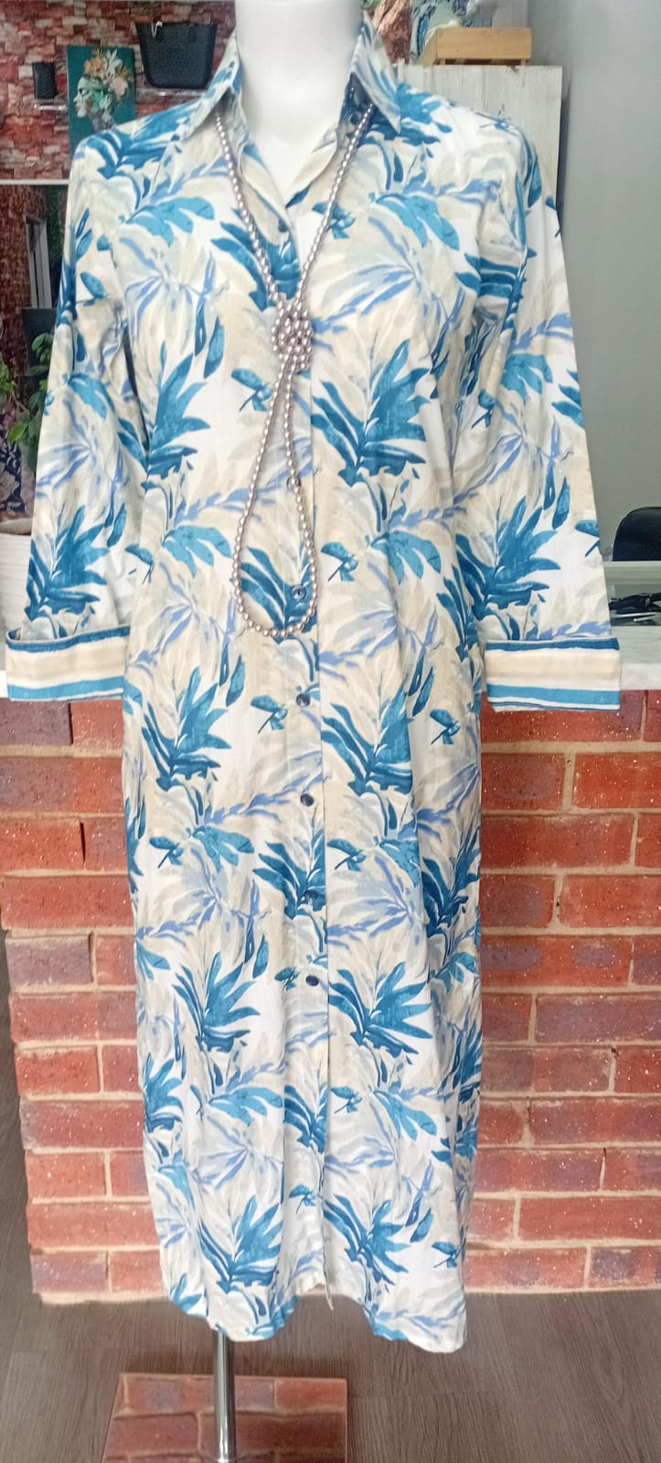 This beautiful Blue white and cream leaf print dress by Iconic is perfect edition for any holiday destination