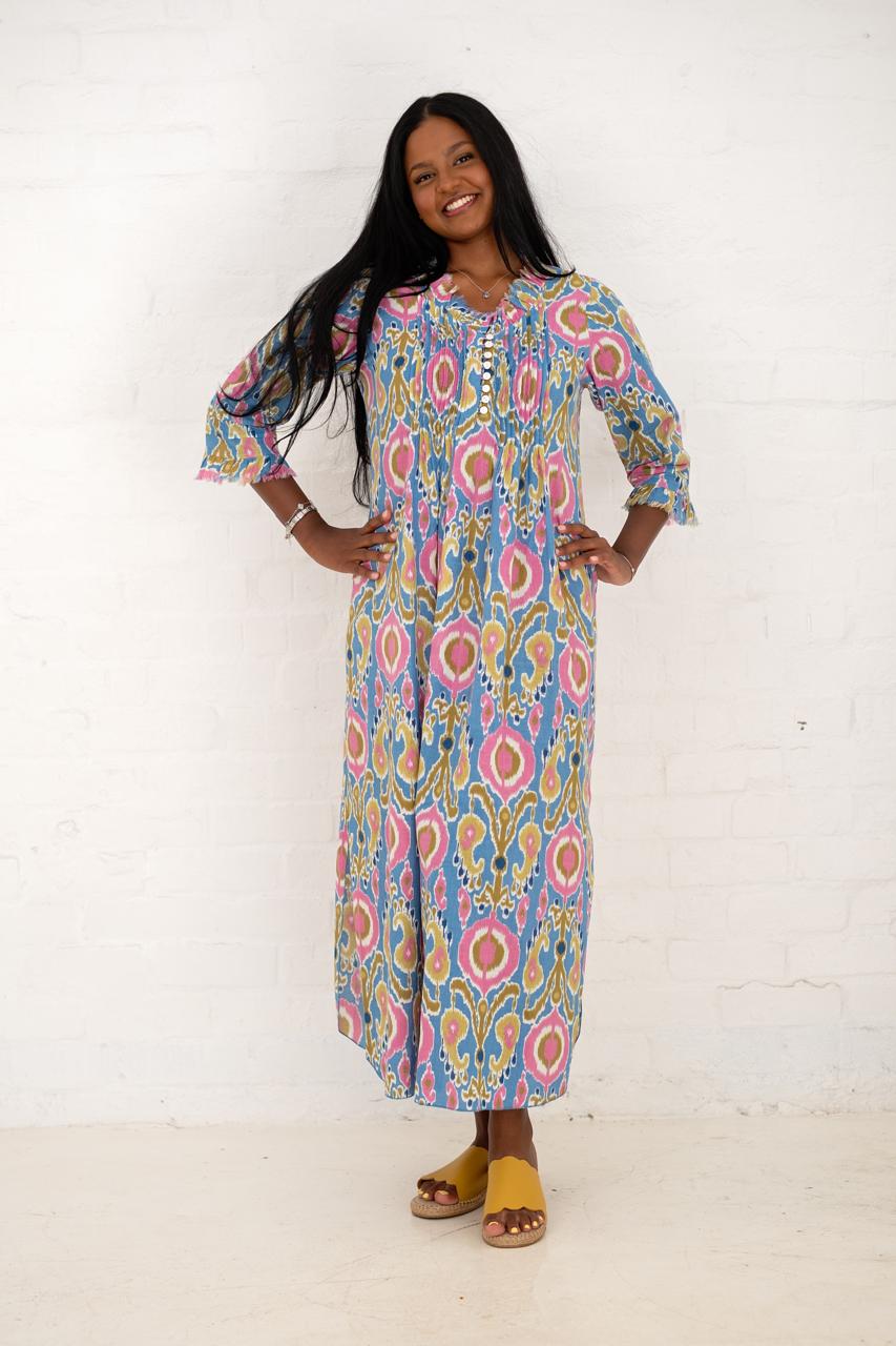 Tags: beach dress, cute dress, Dress, dress with sleeves, holiday outfit, ICONIC, Pink and blue dress, resort ware, summer dress