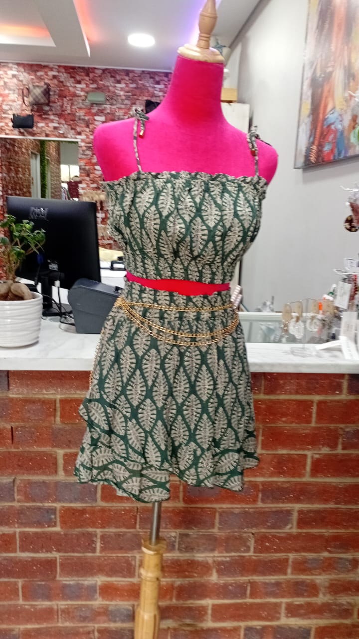 GREEN LEAF PRINT CROP TOP WITH FRILL DETAIL BY STELLA MORGAN IS A SUPER CUTE MUST HAVE -SKORT SOLD SEPARATELY