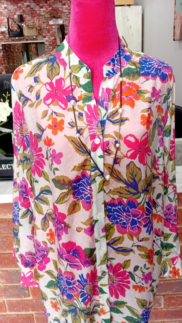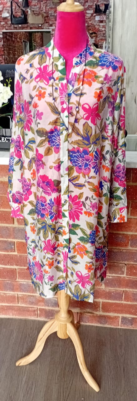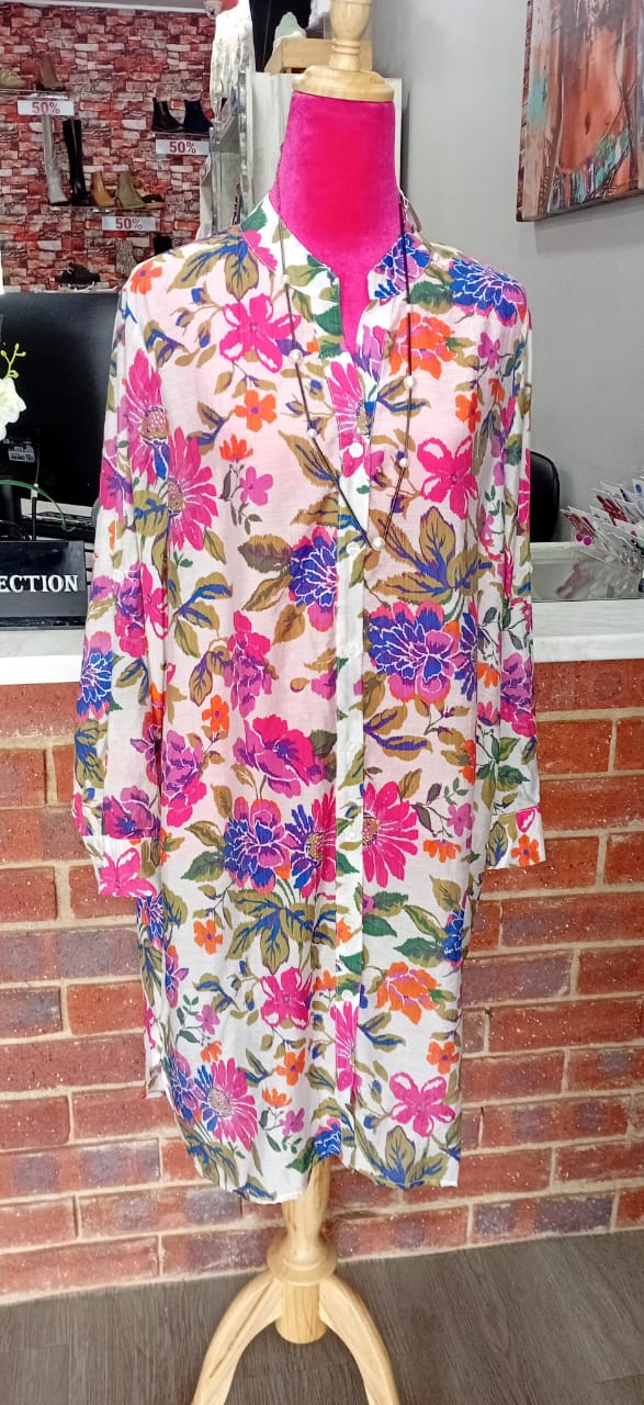 IT3774-DRESS ROSA 100%LINEN FLOWER PRINT LONG DRESS