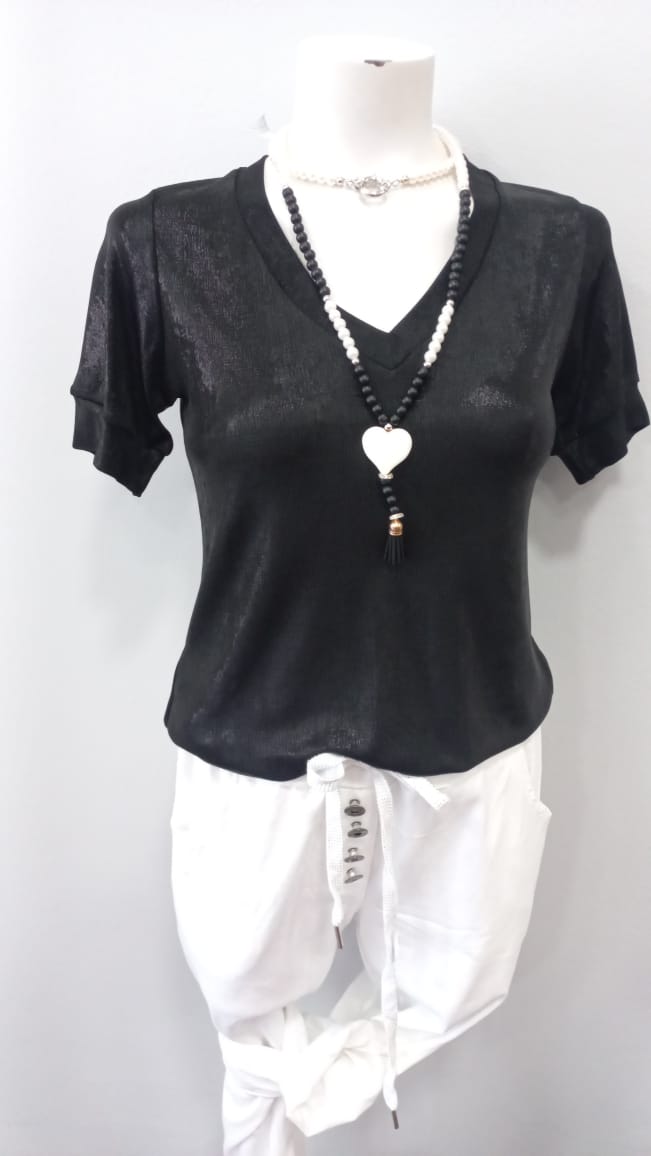 KATE JORDAN BLACK V-NECK RAYON T-SHIRT